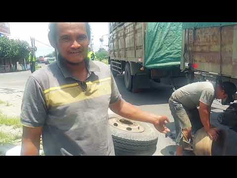 Supri 50 Th sopir mobil gandengan yang membawa muatan Tanah dari Trenggalek menuju Gresik mengalami patah baut roda di depan Pos Lantas 902 Mengkreng, mengatakan berterimakasih kepada anggota pos yang telah membantunya. Kamis 01 Februari 2024